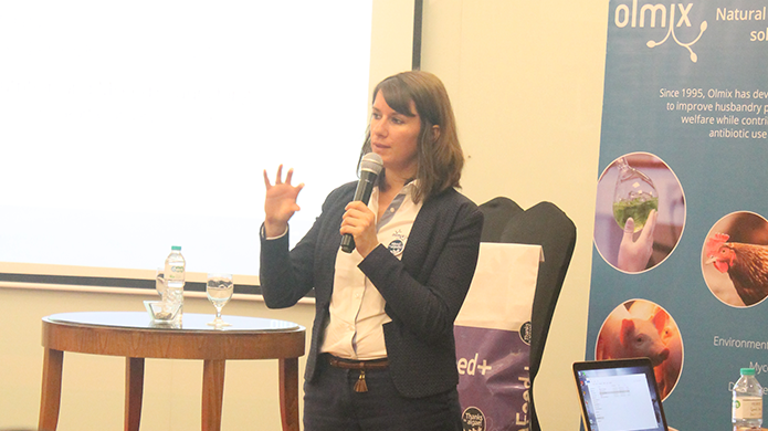 After Dr Tangendjaja’s speech, it was time for MFeed+ to come into scene. Ms Marie Gallissot, Olmix’s For Feed Specialist, took the lead to present the benefits of the Olmix’s natural feed additive through a lecture entitled ‘Innovative Technology to Improve Digestibility, Thanks to Algae!’: