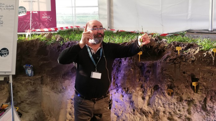 “The only way to create porosity in the deepest part of the soil is to stimulate soil life and roots development. No machine can interfere in this part… The activity of earthworms is able also to create porosity by going up to catch the organic matter on the top of the soil and by going down to digest it! If you export too much organic matter of the fields you don’t let enough food for earthworms and so you reduce their capacity to mix the soil and to create galleries. The best challenge for the next generation is not to use more fertilizers but to maximize the use of what we have under our feet: the soil and its biological activity“, Mr Benoit Le Rumeur, from Olmix Plant Care, explained.