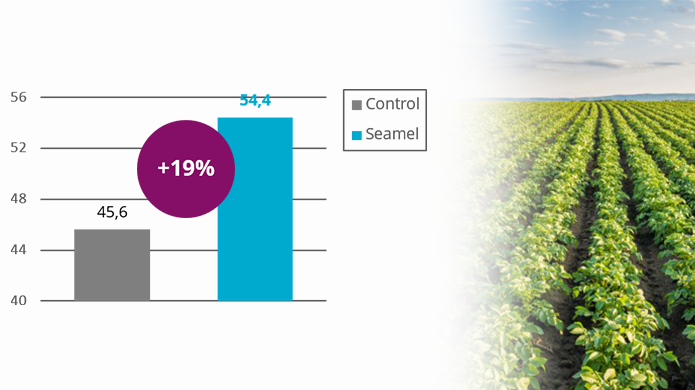 The application of 2 L/ha of SeaMel Booster and 2 x 2,5 L/ha of SeaMel Prevent leads to a yield increase of 19% with 54,4 t/ha compared to 45,6 t/ha for the untreated part.